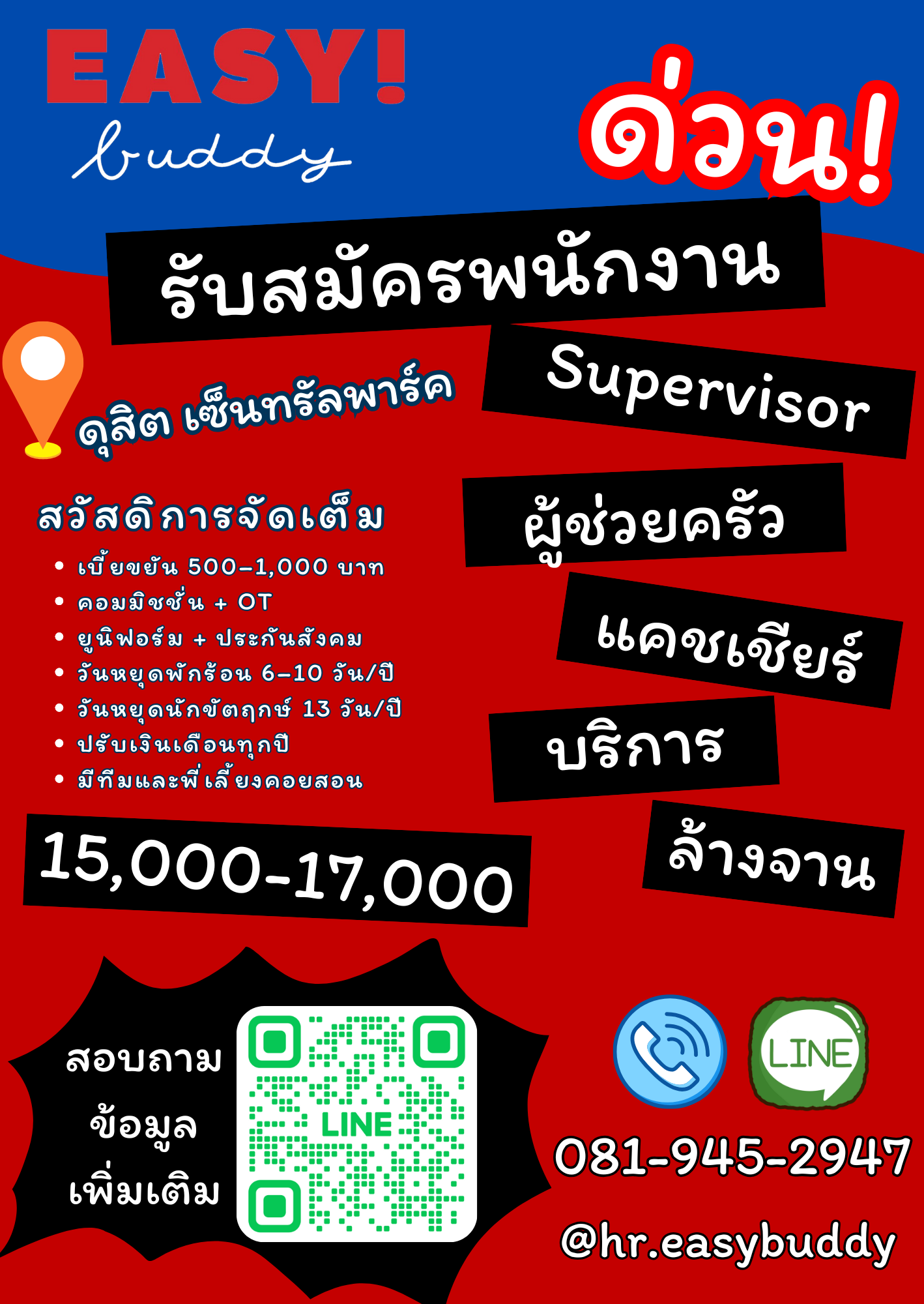 พนักงานประจำร้านอาหาร EASY! buddy สาขา ดุสิตเซ็นทรัลพาร์ค(สีลม)