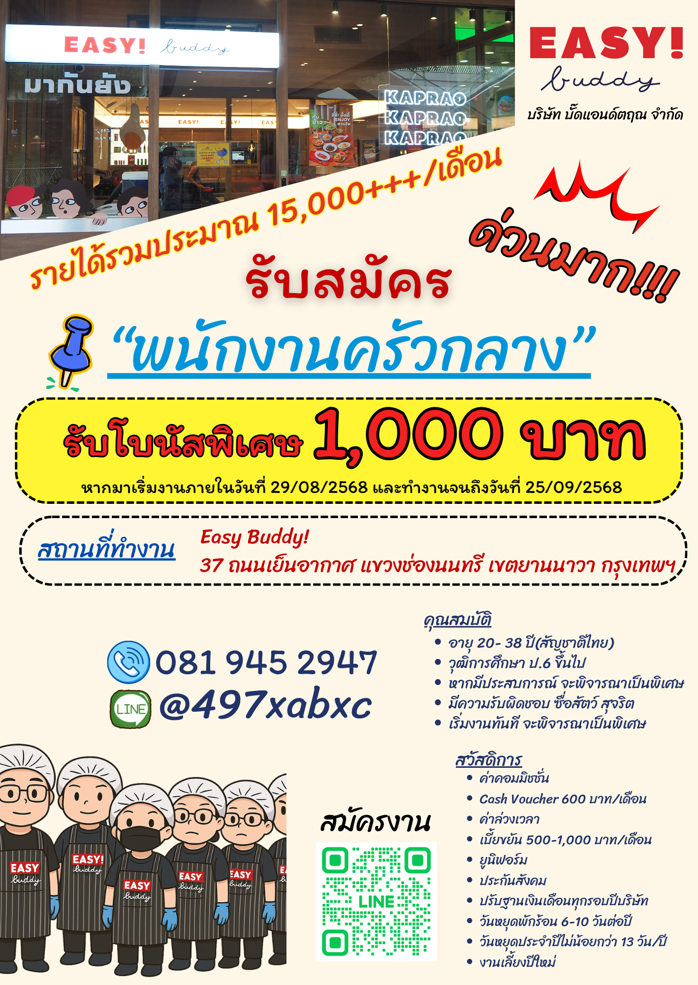 - อาจมีงานยกของตามความเหมาะสม